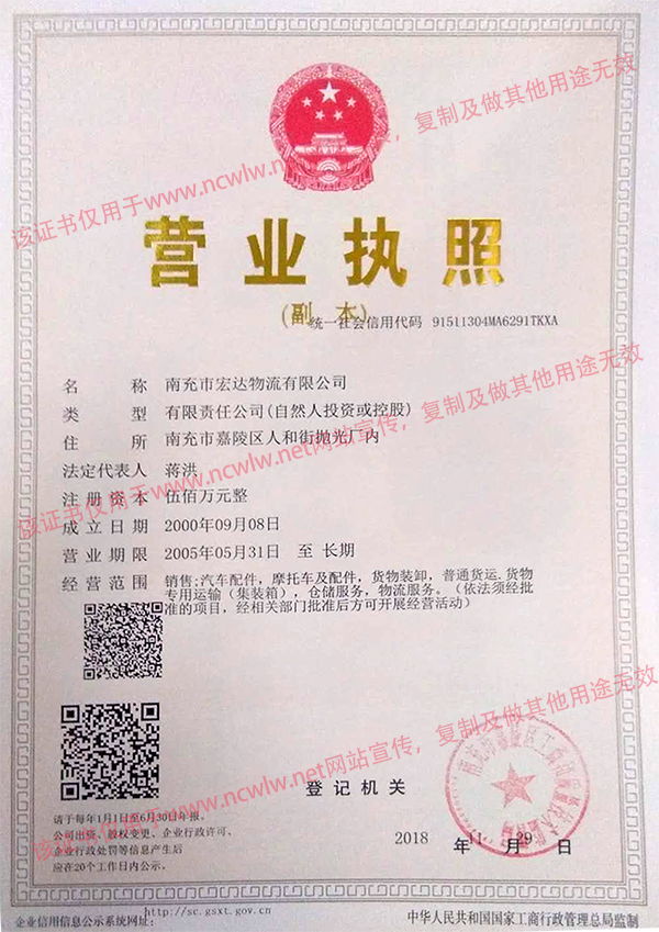 南充物流網(wǎng)(m.jixie900.com) 南充市宏達物流有限公司營業(yè)執(zhí)照